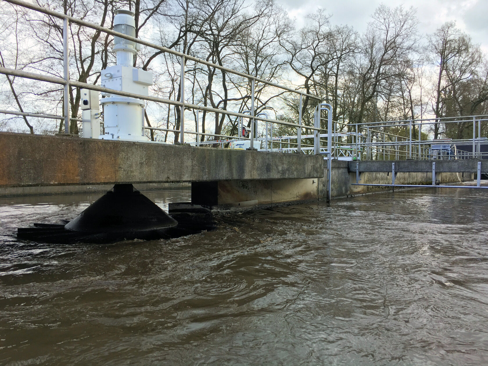 The LANDOX flow booster acts to generate a plug-flow system that is distinctive in an oxidation ditch, thus achieving an almost laminar water flow through the channels across the whole depth of the oxidation ditch. This boosts efficiency of the fine bubble aeration system.